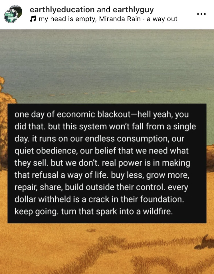 Look, you don’t have to fully opt out of the economy (unless you’re ready for off-grid life which sounds super appealing in the time of end stage capitalism). But you can make strategic decisions that hit corporations where it hurts: