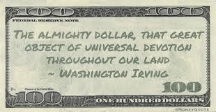 The expression, the almighty dollar, sums up the way money is treated in the U.S. As not just important, but almost sacred.