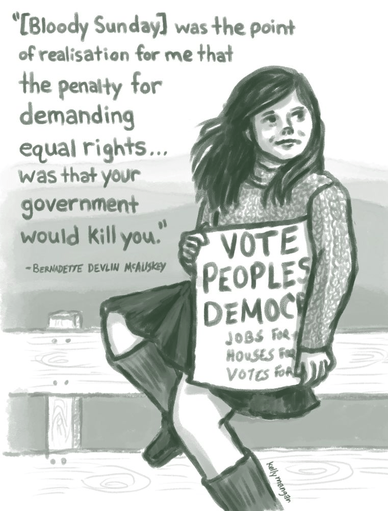 That Bernadette Devlin, a young woman in flares and fire, stood in Westminster and refused to let the system rewrite the story: