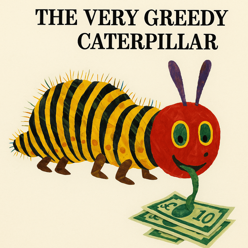 …the greedy CATerpillar gobbled up £13 million in public money. Public money is the money everyone puts into the pot but not everyone gets to decide where it‘s spent.